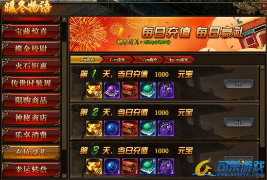 2.连续充值达到3天,奖励翻倍领,更可领取暗影晶石、地狱晶石、觉醒晶石等贵重物品