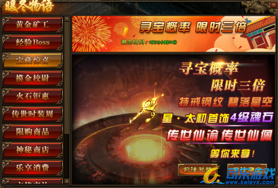 1.活动期间,玩家寻宝概率翻倍,极高几率获得星·太初首饰,传世灵器、传世灵甲,特戒钢纹,仙元石、碧落星空,传世灵器、传世灵甲,高级天魂石、四级魂石,传世灵器·仙谕以及传世灵器·仙佩
