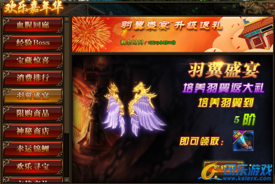 1.活动期间,玩家羽翼只需达到5级,即可领取一定数量的羽毛;