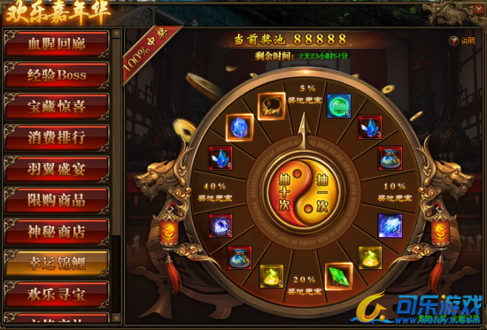 1.活动开启后奖池内默认存入88888元宝,每抽奖1次可使奖池内增加100元宝