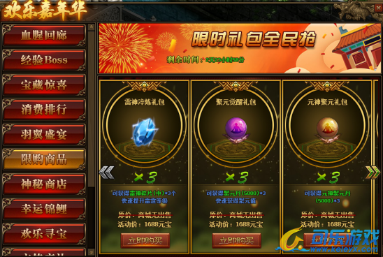 1.活动期间,玩家可在活动面板购买限购商品;(可翻页)
