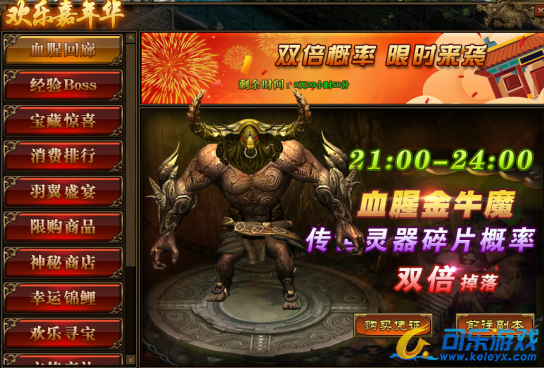 1.活动期间,玩家参与“多人副本-血腥回廊”,获得“传世灵器碎片”的概率翻倍;
