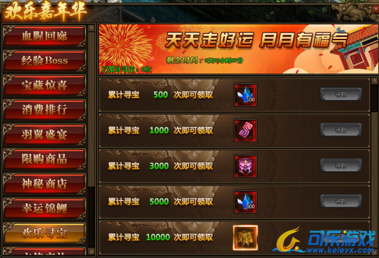 1.活动期间,玩家累积寻宝次数满足要求,可以领取本职业星石、本职业仙装、传世仙装等相应奖励;