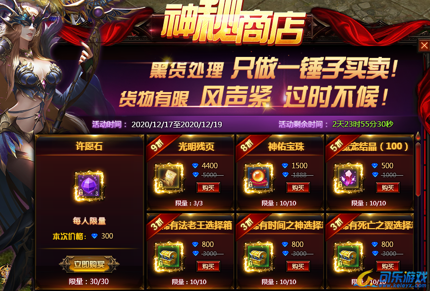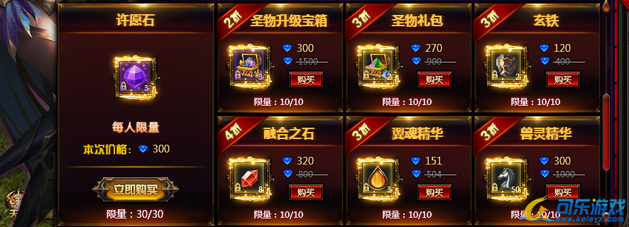 玩家也可以在神秘商店中购买许愿石许愿,许愿石许愿必得稀有品质以上宝箱。