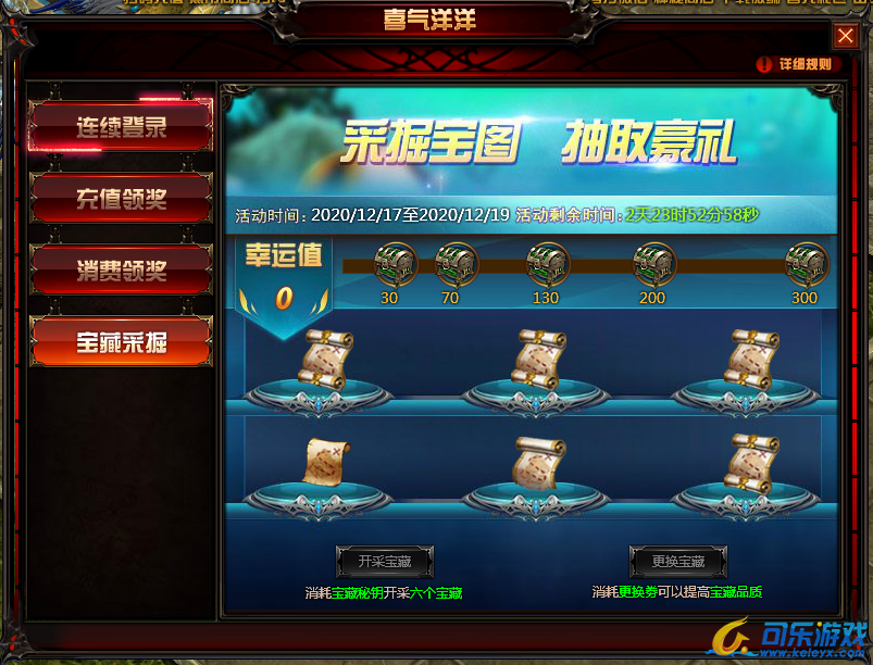 每充值300钻石可获得1个“宝藏秘钥”,每消费600钻石可获得1个“更换券”。