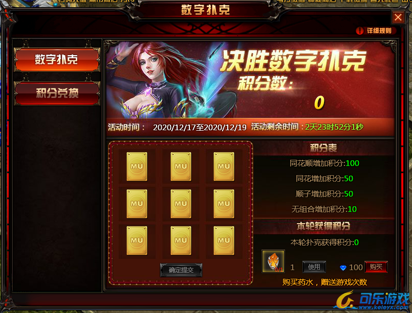 通过数字扑克获取的积分可以在积分兑换界面兑换丰厚奖励,快来参加吧!