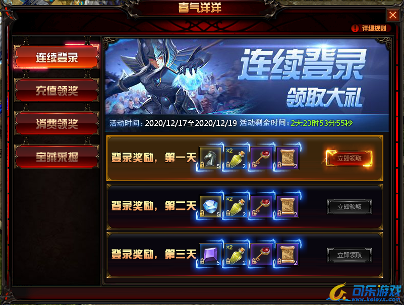 活动内容:玩家在活动时间内,可领取活动期间每日登陆可以获得1个“宝藏秘钥”,2张“更改券”。