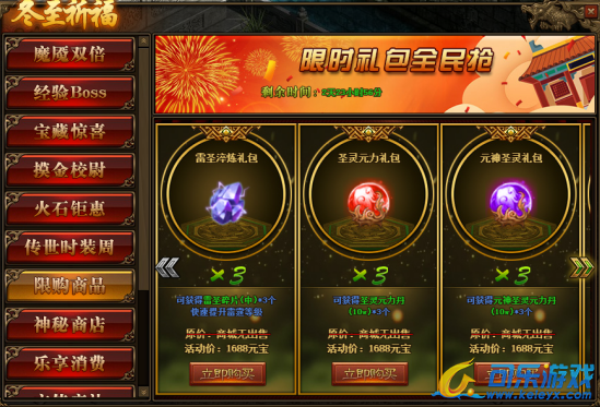 1.活动期间,玩家可在活动面板购买限购商品;(可翻页)