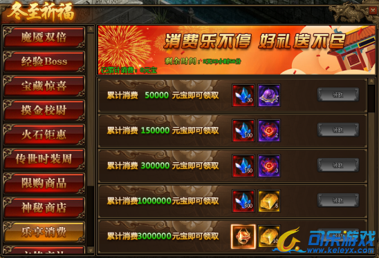 1.活动期间,玩家累计消费满足要求,可以领取境界修为、本职业星石、传世灵戒等相应奖励;