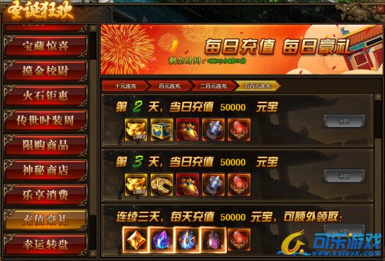 2.连续充值达到3天,奖励翻倍领,更可领取暗影晶石、地狱晶石、觉醒晶石等贵重物品
