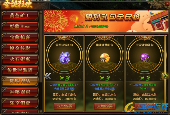 1.活动期间,玩家可在活动面板购买限购商品;(可翻页)