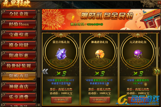 1.活动期间,玩家可在活动面板购买限购商品;(可翻页)