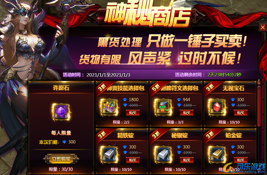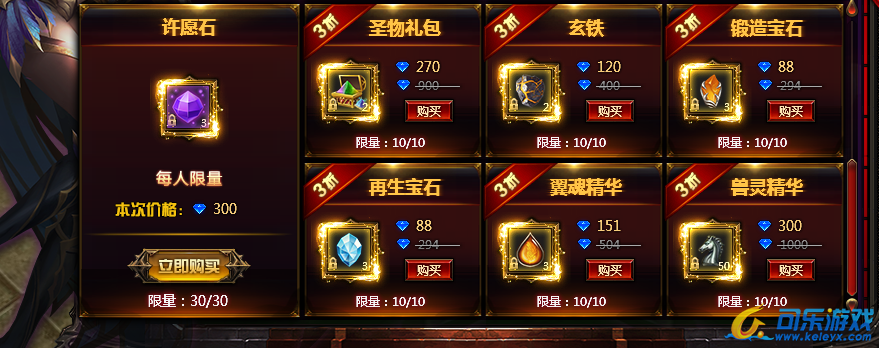 玩家也可以在神秘商店中购买许愿石许愿,许愿石许愿必得稀有品质以上宝箱。