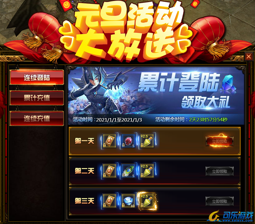 活动内容:活动时间内,玩家每天登陆游戏即可获得丰厚奖励。