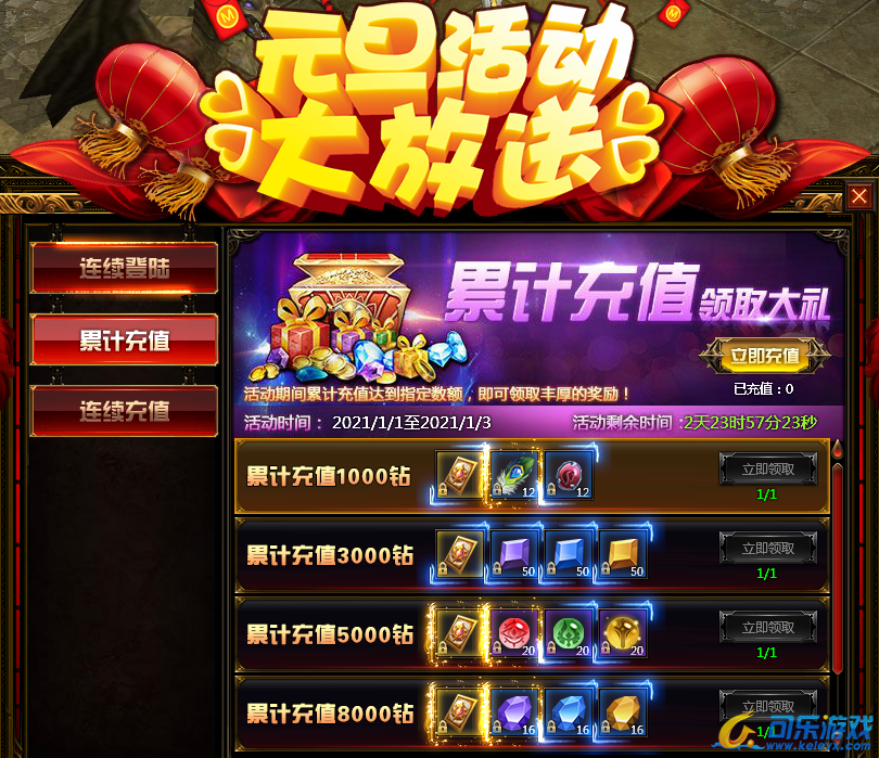 活动内容:玩家在活动时间内,累计充值达到一定钻石即可获得丰厚礼品!