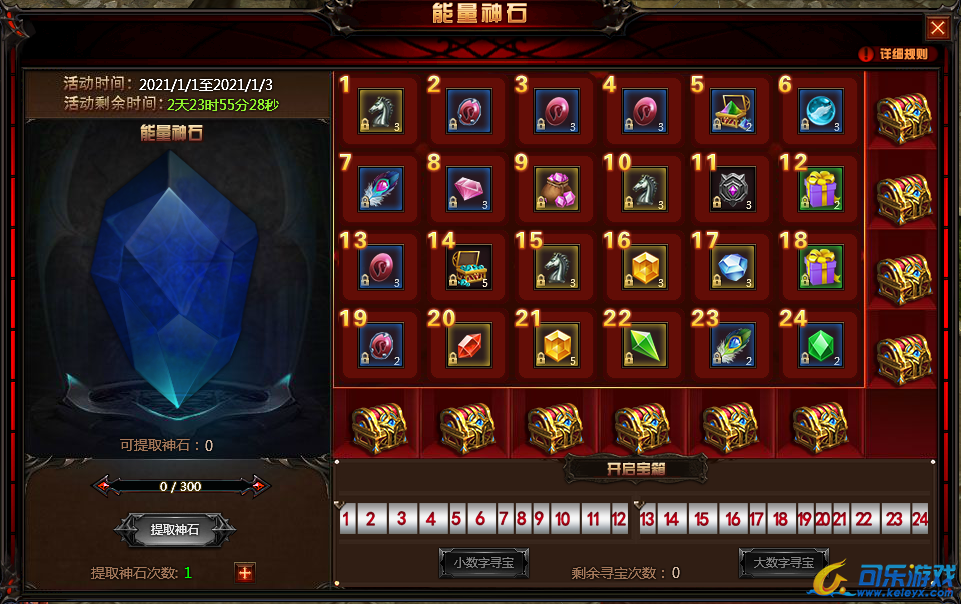 1)当可提取神石为0时,提取出来的神石能量按照100点能量兑换1次寻宝次数比例提取寻宝次数