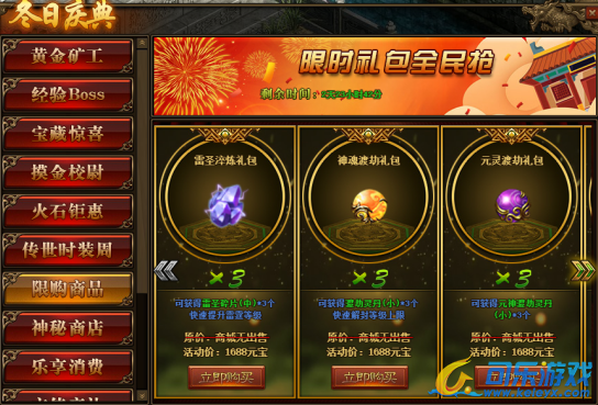 1.活动期间,玩家可在活动面板购买限购商品;(可翻页)