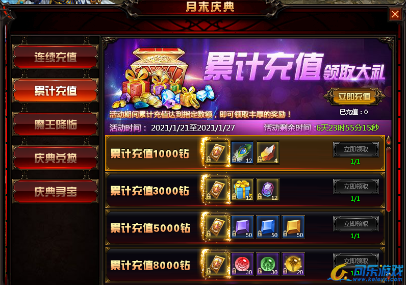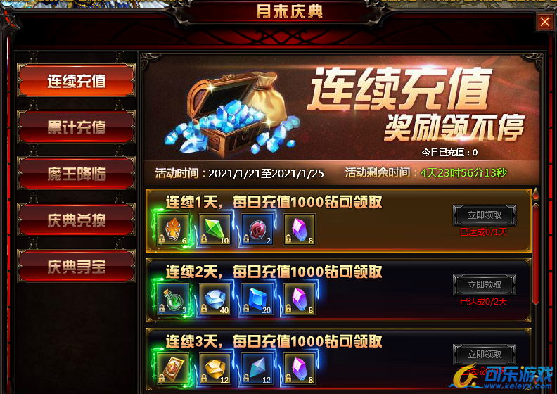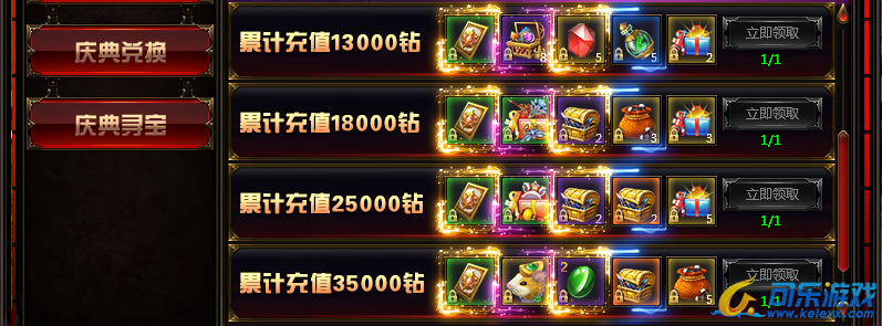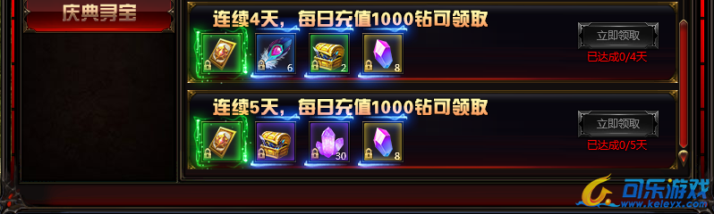 活动内容:活动时间内,玩家每日充值达到1000钻,即可获得丰厚奖励!