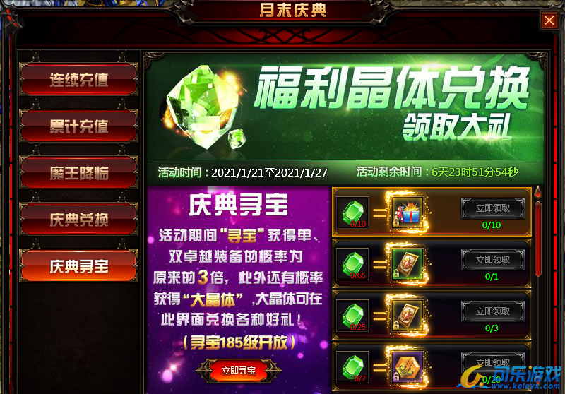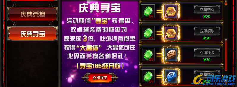 活动内容:玩家在寻宝中有概率可获得大晶体,使用大晶体可兑换游戏中稀有道具,详情请根据游戏中活动兑换页面为准。