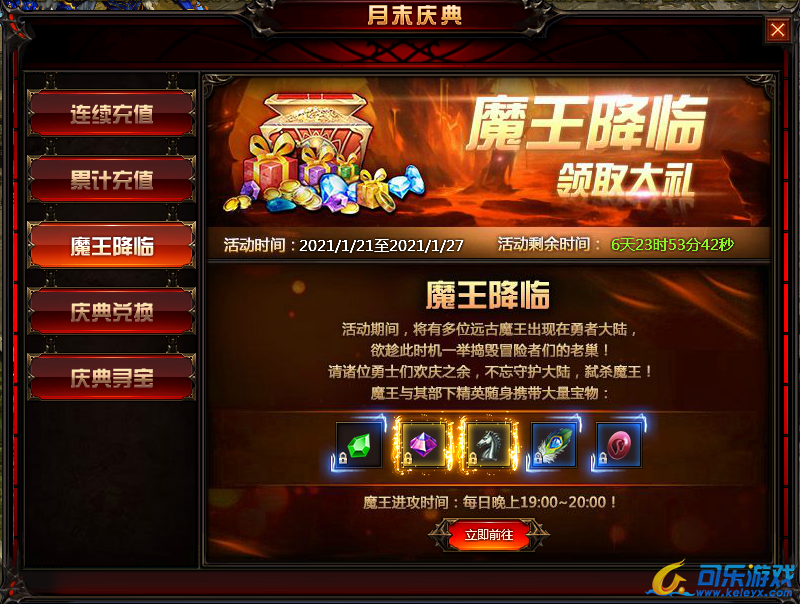 活动内容:活动时间内,每天晚上19:00~20:00勇者大陆会刷新魔王BOSS,击杀BOSS后可获得大量稀有道具奖励。