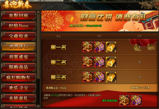 第三名:名列前茅自选宝箱,传世灵器随机宝箱*1,金条(300w)*2;