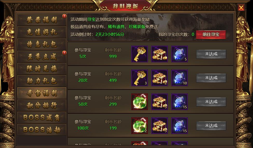 活动内容:活动期间打成寻宝次数任务,获得超值奖励
