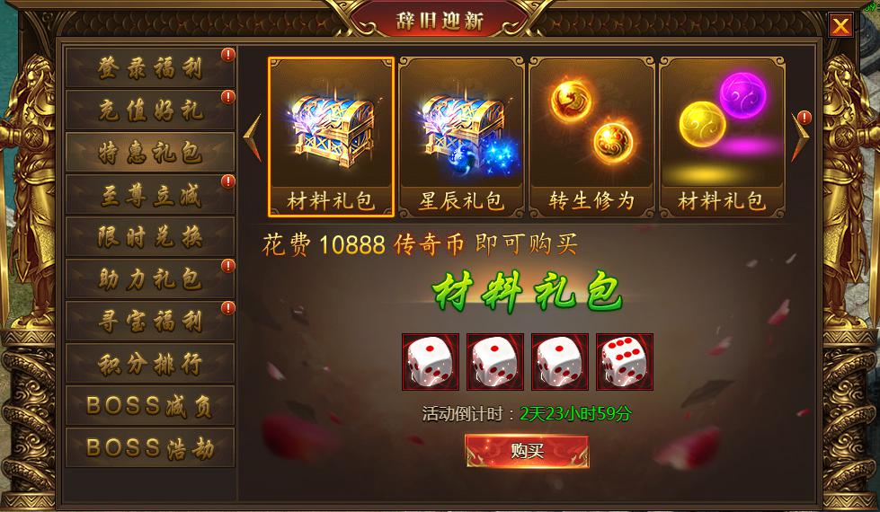 活动内容:活动期间可消耗传奇币购买特惠礼包