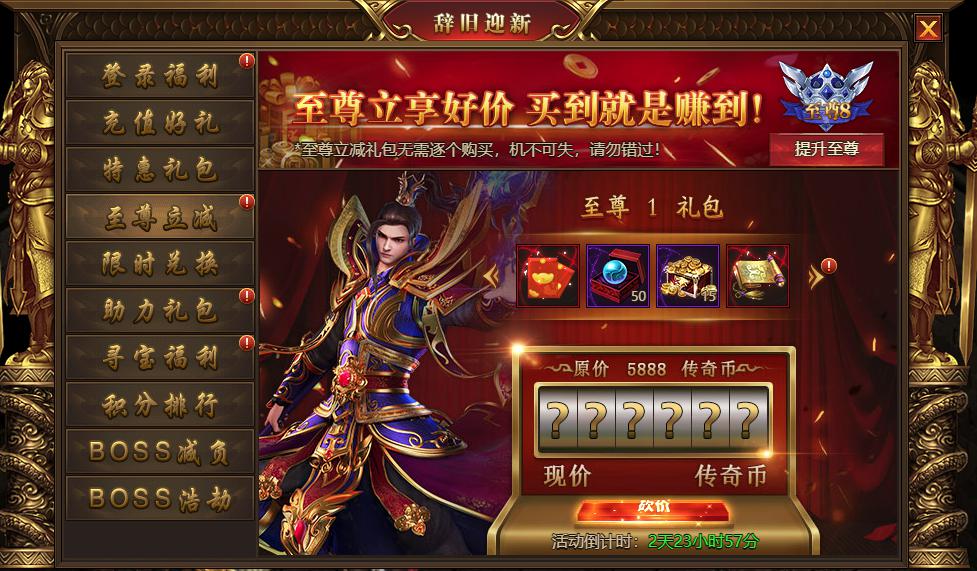 活动内容:活动期间满足至尊等级条件可消耗传奇币购买各种砍价礼包