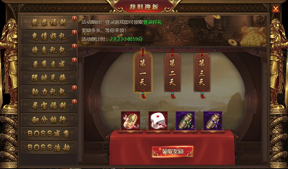 活动内容:活动期间玩家登录游戏即可领取登录奖励