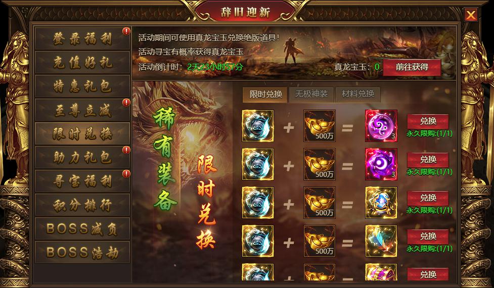 活动内容:活动期间可使用真龙宝玉兑换绝版道