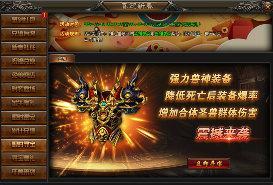 规则:活动期间开启兽神装备跟蛮神装备抽奖