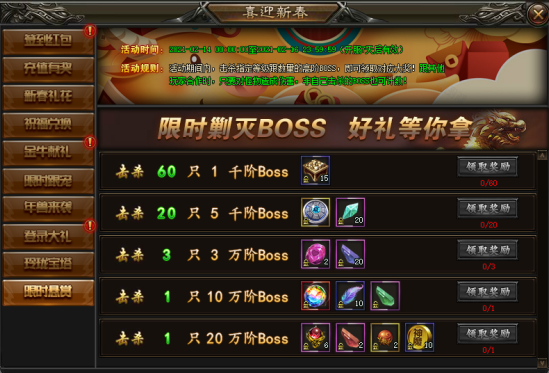 规则:根据击杀对应阶段的BOSS数量领取奖励