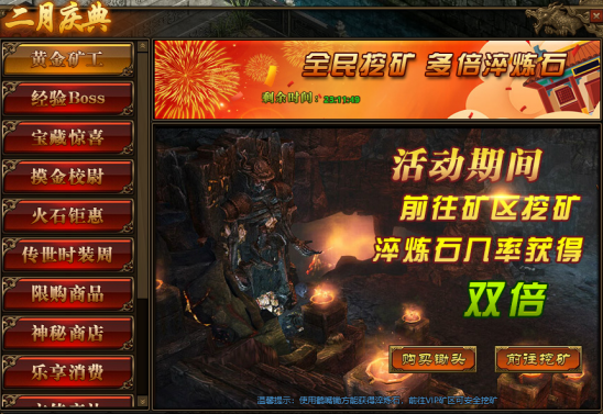 2.注意:必须使用“鹤嘴锄”才可获得“淬炼石”,在VIP矿区可安全挖矿;