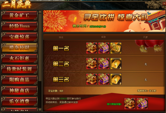 1.活动期间,玩家寻宝次数达到1000次即可参与到摸金校尉排行榜中