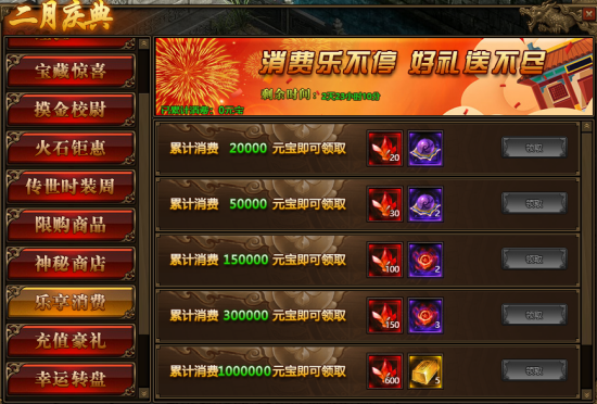 1.活动期间,玩家累计消费满足要求,可以领取境界修为、本职业星石、传世灵戒等相应奖励;