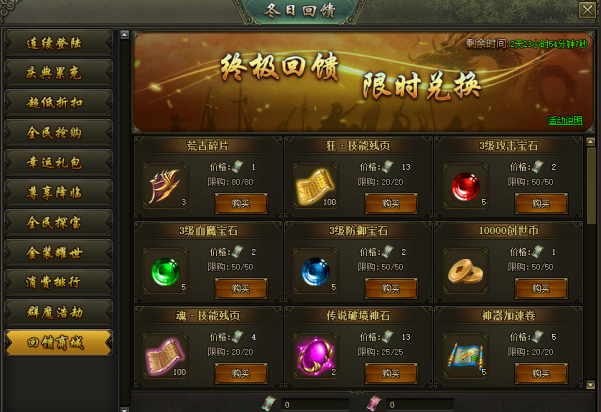 活动说明:活动期间,可使用充值回馈卷和消费回馈卷兑换大量奖励