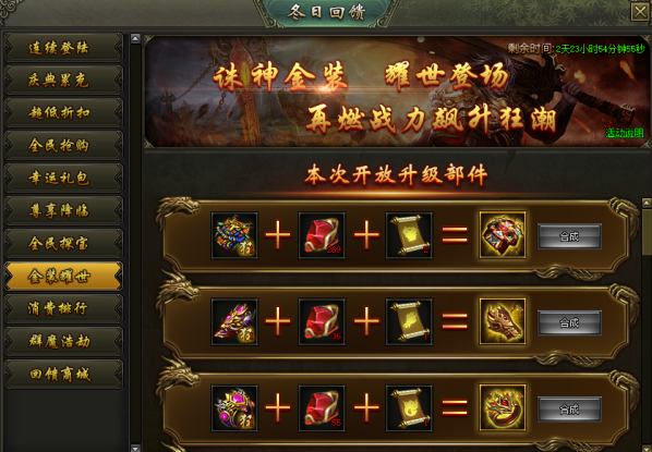 活动说明:活动期间,诛神金装耀世登场,穿戴之后战力飙升