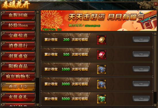 1.活动期间,玩家累积寻宝次数满足要求,可以领取高级天魂石等相应奖励;