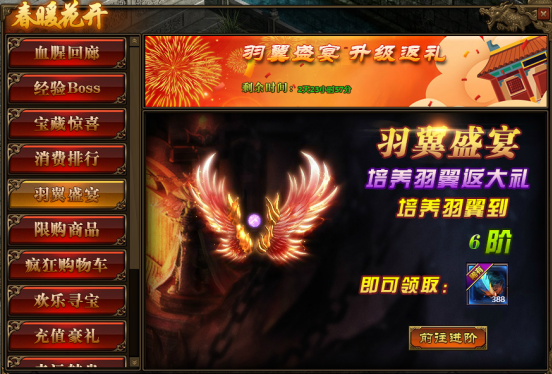 2.玩家每再提升一级的羽翼,将可再次免费领取羽毛;