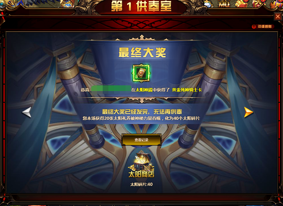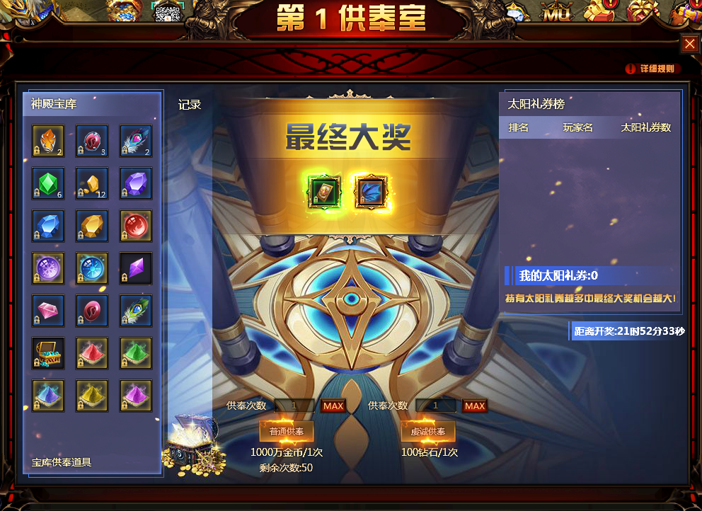3.每日晚10点会结束供奉,并根据太阳礼券获取情况抽取最终奖励