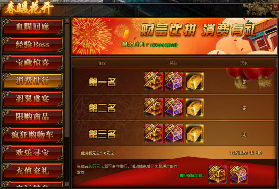第三名:名列前茅自选宝箱,传世灵器随机宝箱*1,金条(300w)*2;