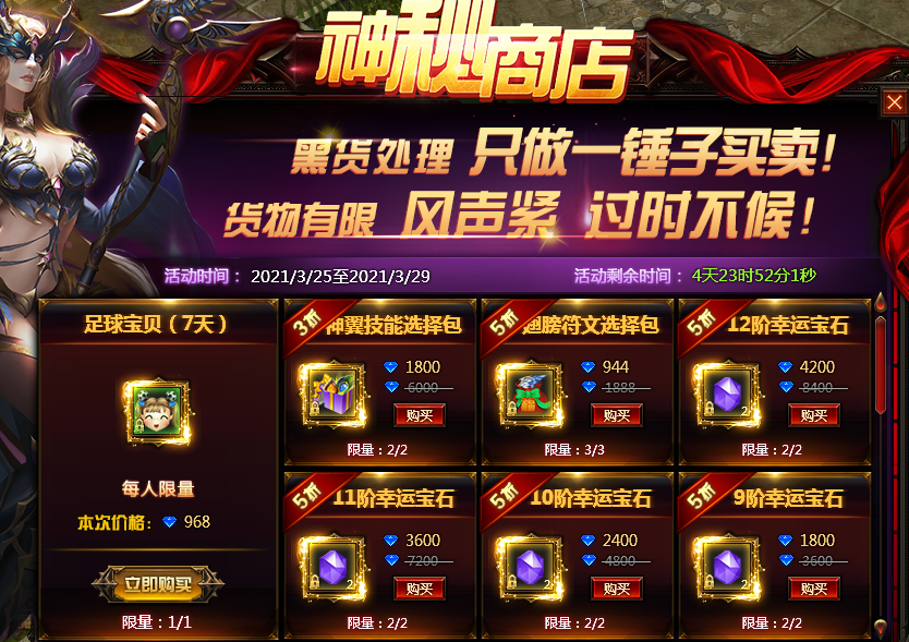 活动内容:神秘商品限时折扣,货物稀有,难得一见,快来选购吧。