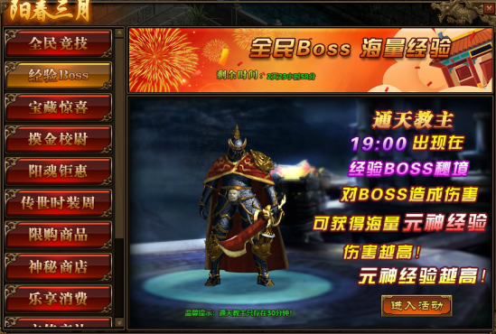 2.活动中,玩家对BOSS造成的伤害,将在活动结束后转换成元神经验并发放;
