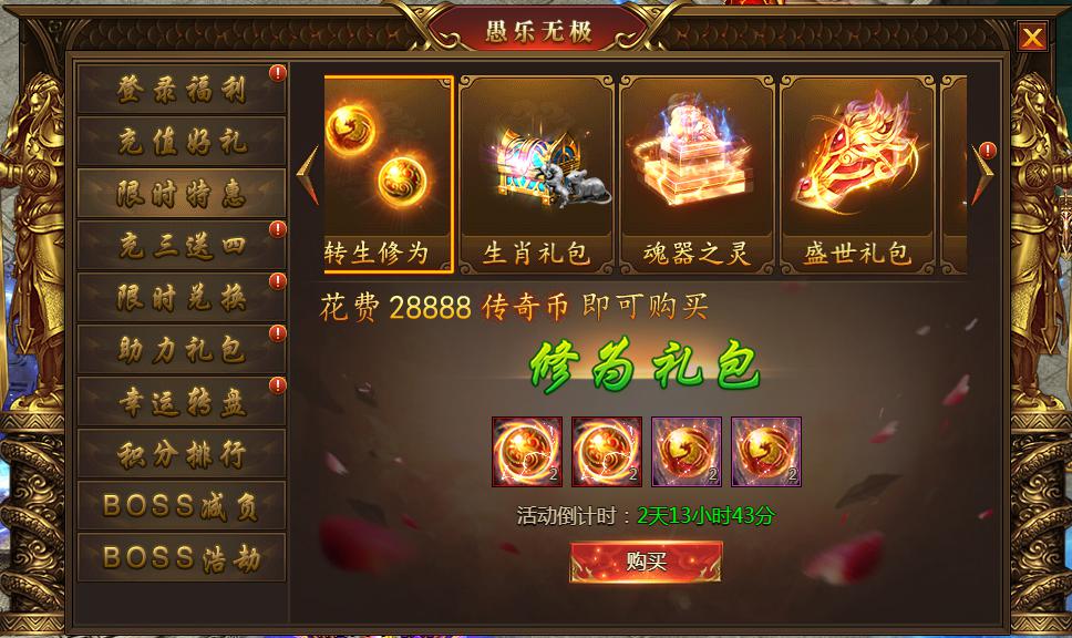 活动内容:活动期间可消耗传奇币购买特惠礼包