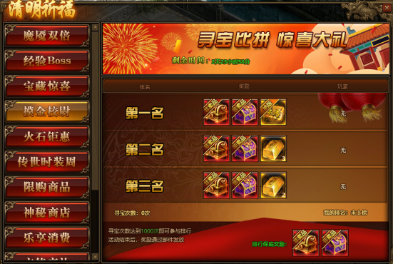 1.活动期间,玩家寻宝次数达到1000次即可参与到摸金校尉排行榜中