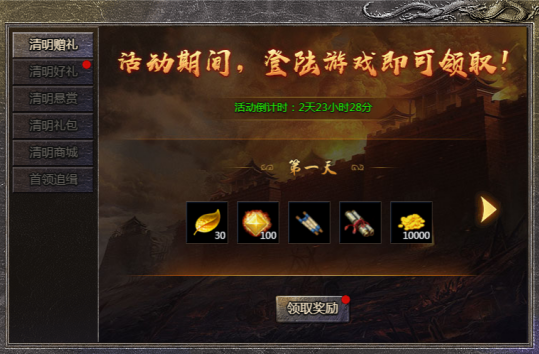 1.活动期间玩家登录游戏即可领取登录奖励