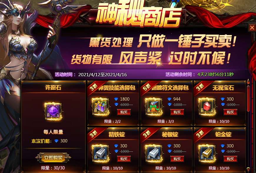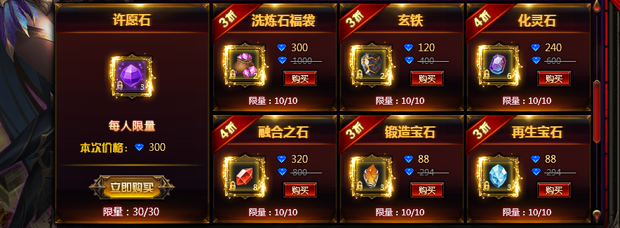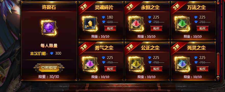 3.玩家也可以在神秘商店中购买许愿石许愿,许愿石许愿必得稀有品质以上宝箱。