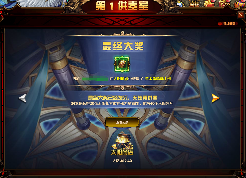 3.每日晚10点会结束供奉,并根据太阳礼券获取情况抽取最终奖励