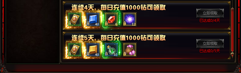 活动内容:活动时间内,玩家每日充值达到1000钻,即可获得丰厚奖励!