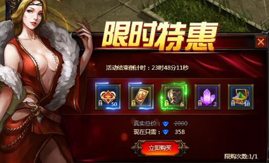活动内容:活动时间内,玩家可在内查看每日购买内容,限时特惠每日仅可购买一次且仅限当日购买。机不可失,赶快来购买吧!